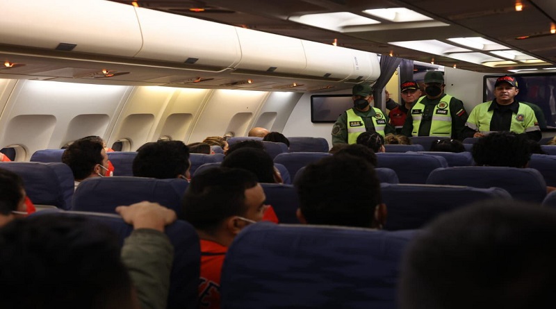 El vuelo llegó a Caracas pocos días después de la repatriación de los 252 migrantes que estuvieron cuatro meses presos en El Salvador, hasta el pasado viernes, cuando el gobierno de Maduro liberó a un grupo de presos políticos y a diez estadounidenses.