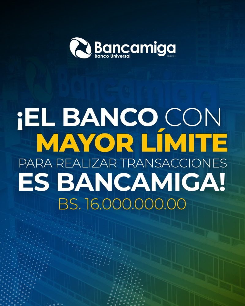 A partir de ahora, los clientes de Bancamiga podrán realizar transferencias hasta Bs. 16.000.000 en el caso de personas jurídicas y Bs. 1.000.000 para personas naturales. Las operaciones por Pago Móvil suben hasta Bs. 250.000.