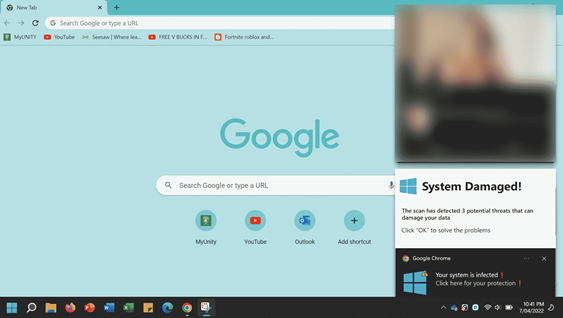 Estafas de soporte técnico: Una ventana emergente de advertencia en la pantalla de una computadora o una llamada telefónica que afirma que un dispositivo ha sido infectado con malware. El representante de «soporte técnico» lo convence de que le conceda acceso remoto y, a continuación, roba sus credenciales bancarias o instala malware -precisamente- para robar información en el dispositivo.
