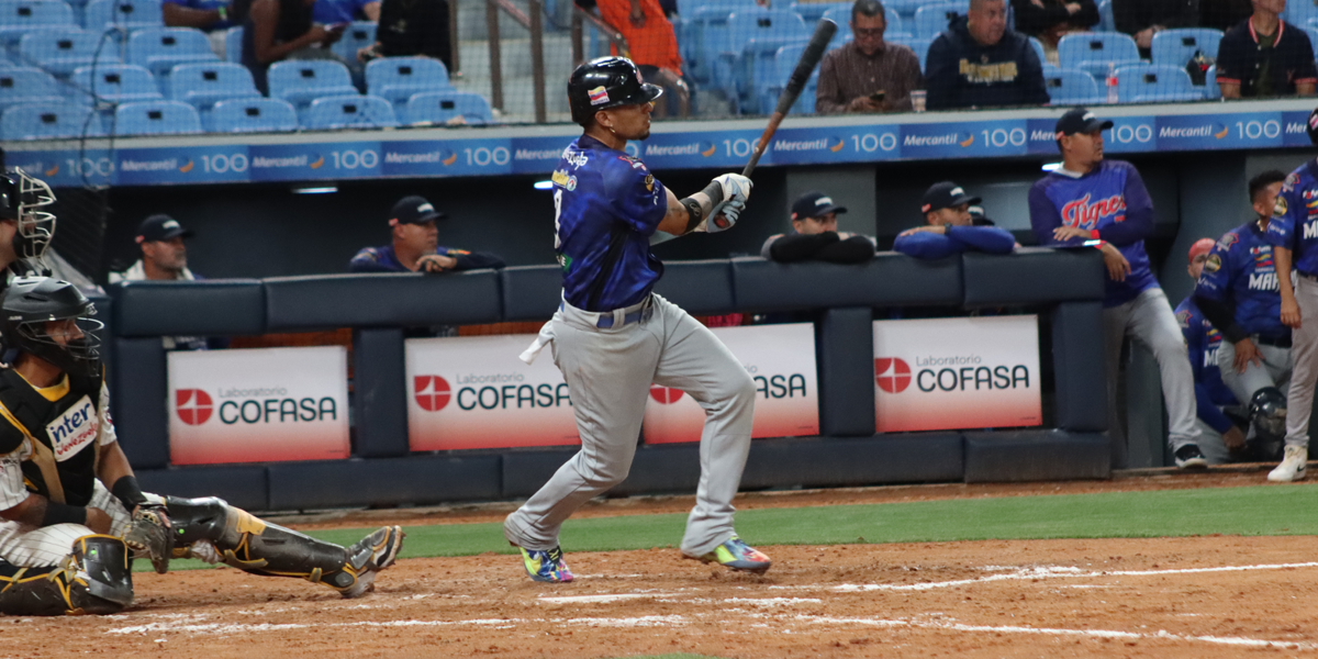 Una racha de 22 juegos consecutivos conectando al menos un imparable; la más larga en la historia de los Tigres de Aragua, lo que ha metido de lleno al jardinero en la discusión de los mejores bateadores de la campaña. Al momento de escribir esta nota, está anclado a cuatro lideratos ofensivos, al ser primero en promedio (.382), OBP (.473), imparables (60), BABIP (.457) y triples (3).